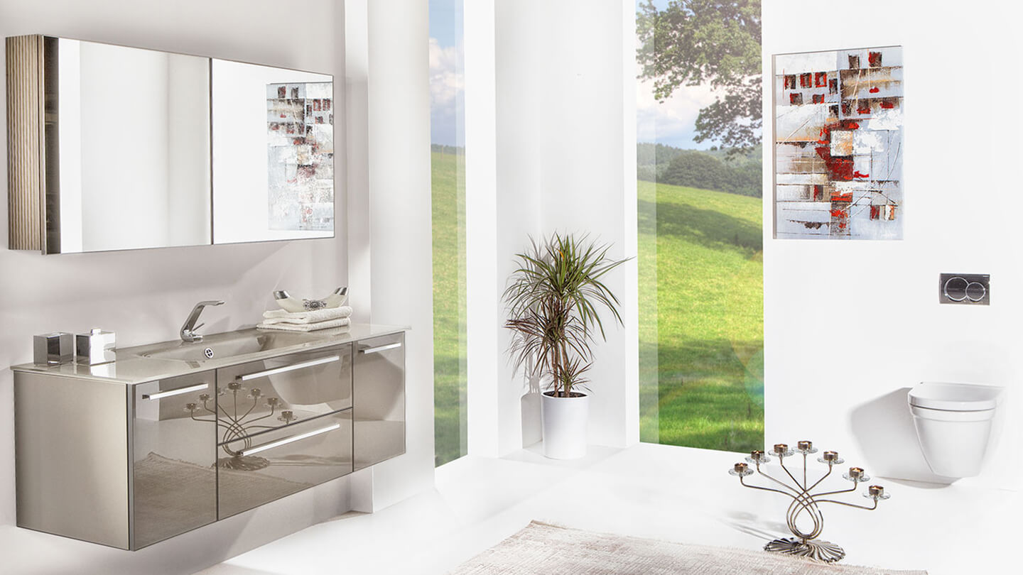 Aluminum frame with water resistant material, 100% durable to water and humidity, you can even wash the vanity, Adjustable cabinet hinges, German HETTICH drawer rails, Recyclable card board is used for packaging, Akzo Nobel paint is used, Bureau Veritas Certification.