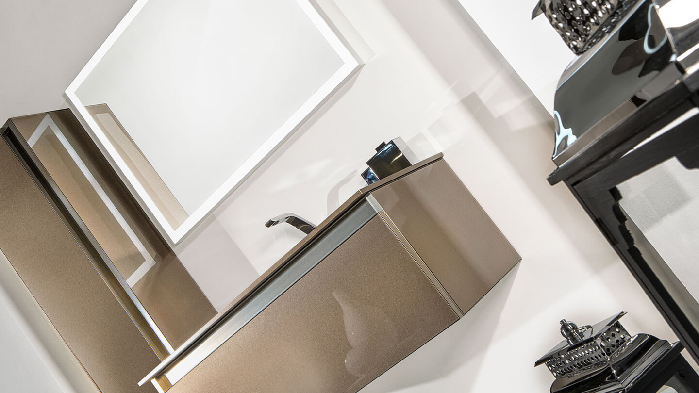 Aluminum frame with water resistant material, 100% durable to water and humidity, you can even wash the vanity, Adjustable cabinet hinges, German HETTICH drawer rails, Recyclable card board is used for packaging, Akzo Nobel paint is used, Bureau Veritas Certification.
